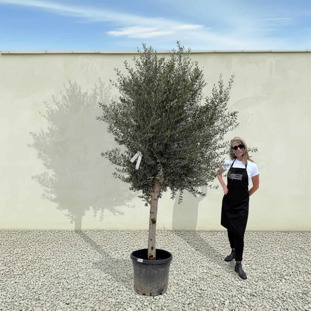 The tree shown in the photo is the exact tree you’ll receive on delivery day. Hand‑selected by the owner of Sutton Manor, this stunning Spanish olive tree was chosen for its exceptionally thick trunk and impressive, full crown. It makes a striking statement whether planted directly into the ground or showcased in one of our elegant pots.
