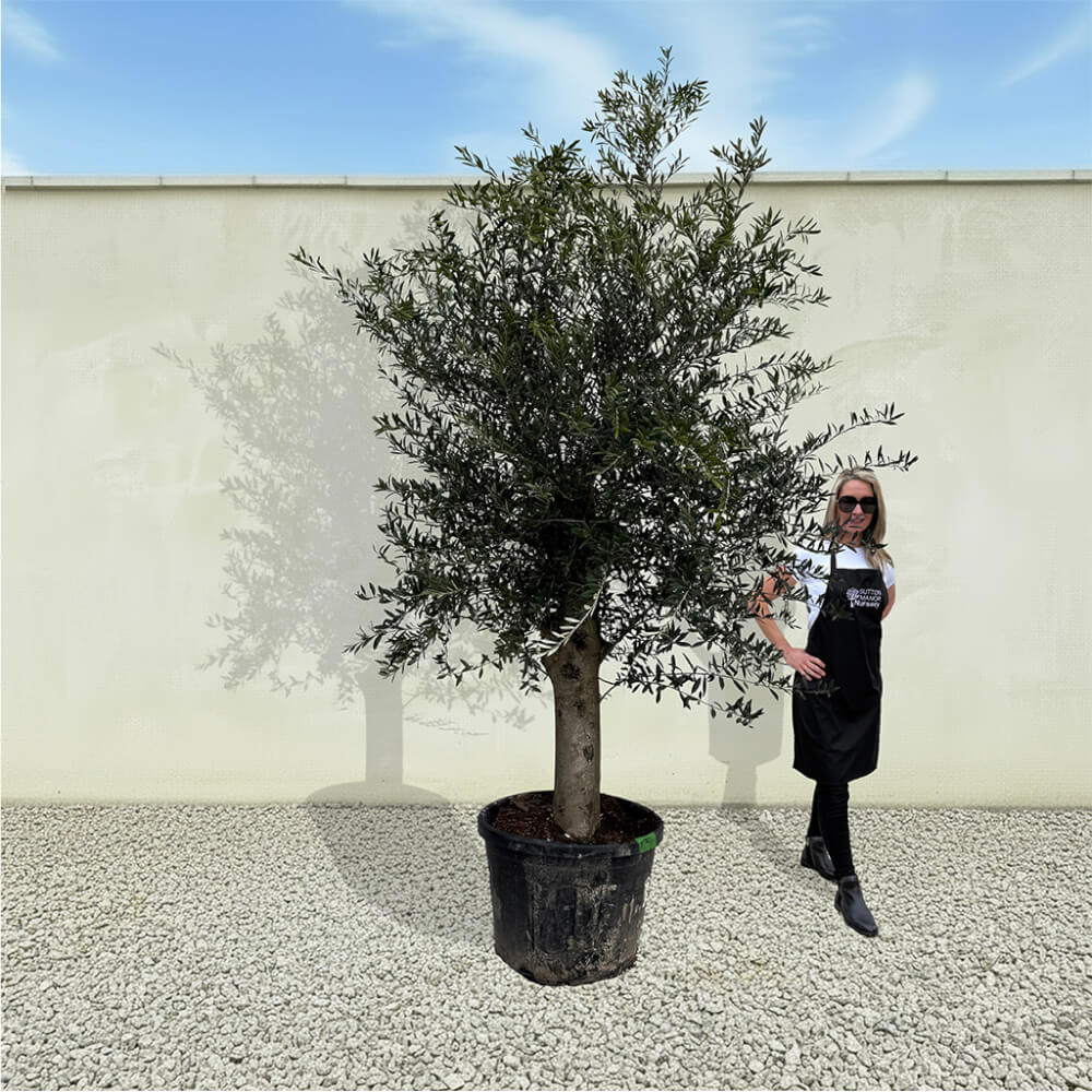 The tree shown in the photo is the exact tree you’ll receive on delivery day. Hand‑selected by the owner of Sutton Manor, this stunning Spanish olive tree was chosen for its exceptionally thick trunk and impressive, full crown. It makes a striking statement whether planted directly into the ground or showcased in one of our elegant pots.