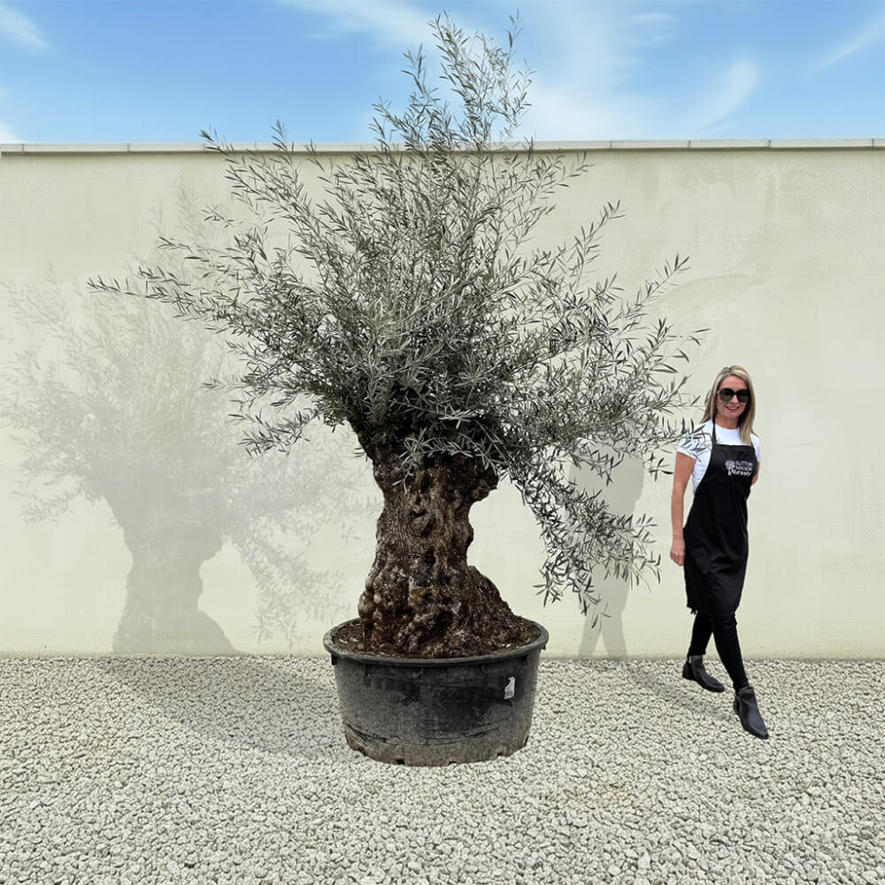 The tree you see in the photo, is the tree you will receive on your delivery day! Personally hand‑selected by the owner of Sutton Manor for its beautifully thick, characterful trunk and impressive, full crown. Our century‑old gnarled Spanish olive trees are rich in natural artistry, each twisted form telling its own story. Whether showcased in one of our elegant pots or planted directly into your garden, this remarkable tree becomes an unforgettable focal point.