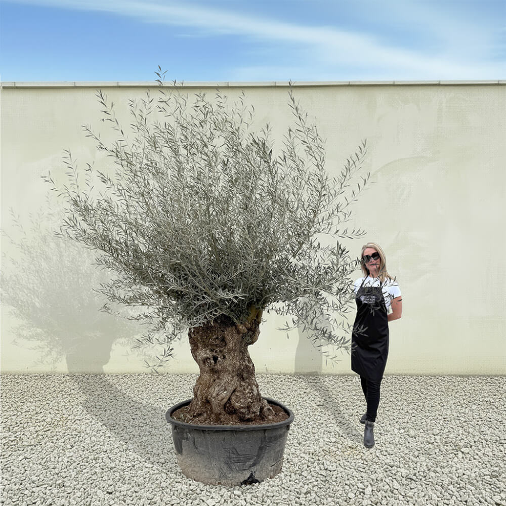The tree you see in the photo, is the tree you will receive on your delivery day! Personally hand‑selected by the owner of Sutton Manor for its beautifully thick, characterful trunk and impressive, full crown. Our century‑old gnarled Spanish olive trees are rich in natural artistry, each twisted form telling its own story. Whether showcased in one of our elegant pots or planted directly into your garden, this remarkable tree becomes an unforgettable focal point.