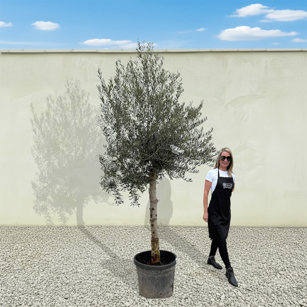 The tree shown in the photo is the exact tree you’ll receive on delivery day. Hand‑selected by the owner of Sutton Manor, this stunning Spanish olive tree was chosen for its exceptionally thick trunk and impressive, full crown. It makes a striking statement whether planted directly into the ground or showcased in one of our elegant pots.
