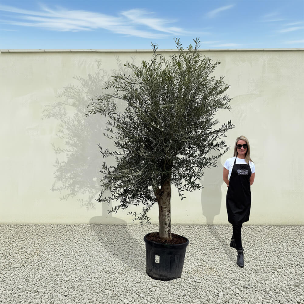 The tree shown in the photo is the exact tree you’ll receive on delivery day. Hand‑selected by the owner of Sutton Manor, this stunning Spanish olive tree was chosen for its exceptionally thick trunk and impressive, full crown. It makes a striking statement whether planted directly into the ground or showcased in one of our elegant pots.