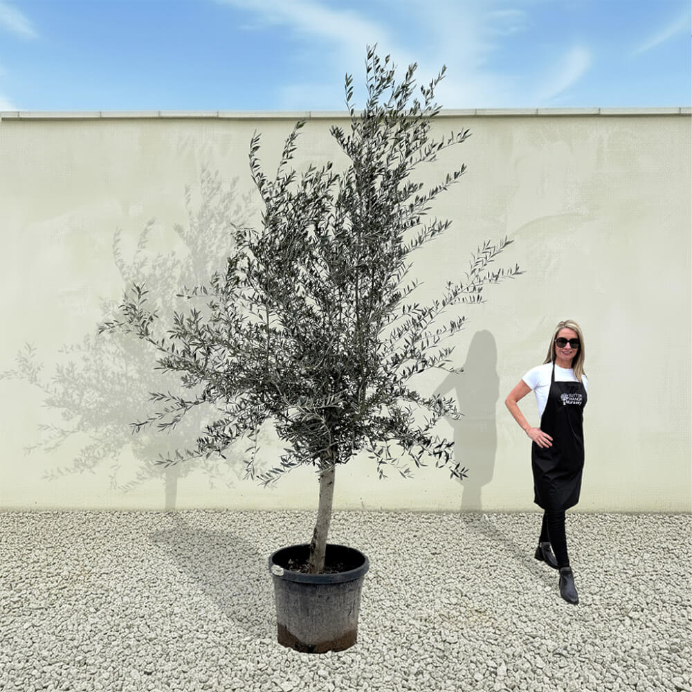 The tree shown in the photo is the exact tree you’ll receive on delivery day. Hand‑selected by the owner of Sutton Manor, this stunning Spanish olive tree was chosen for its exceptionally thick trunk and impressive, full crown. It makes a striking statement whether planted directly into the ground or showcased in one of our elegant pots.