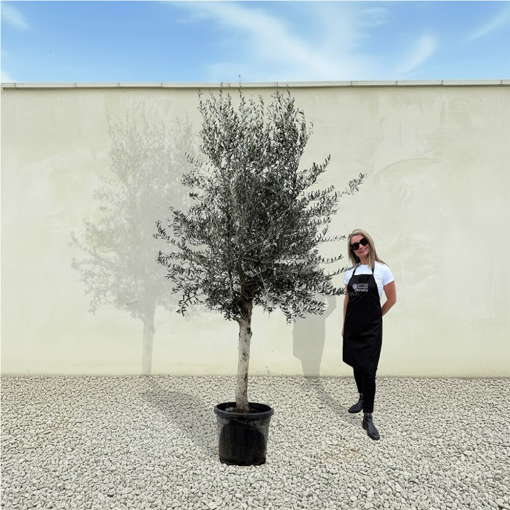 The tree shown in the photo is the exact tree you’ll receive on delivery day. Hand‑selected by the owner of Sutton Manor, this stunning Spanish olive tree was chosen for its exceptionally thick trunk and impressive, full crown. It makes a striking statement whether planted directly into the ground or showcased in one of our elegant pots.