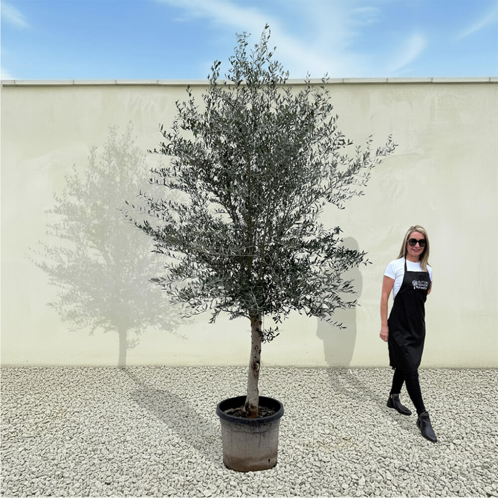 The tree shown in the photo is the exact tree you’ll receive on delivery day. Hand‑selected by the owner of Sutton Manor, this stunning Spanish olive tree was chosen for its exceptionally thick trunk and impressive, full crown. It makes a striking statement whether planted directly into the ground or showcased in one of our elegant pots.
