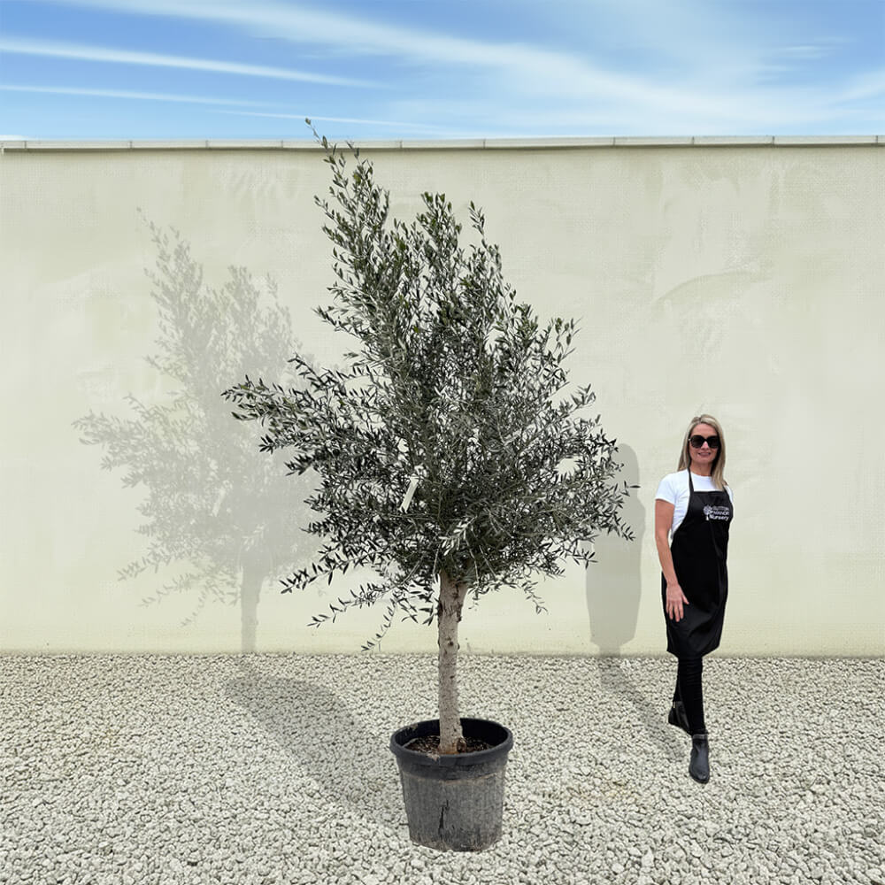 The tree shown in the photo is the exact tree you’ll receive on delivery day. Hand‑selected by the owner of Sutton Manor, this stunning Spanish olive tree was chosen for its exceptionally thick trunk and impressive, full crown. It makes a striking statement whether planted directly into the ground or showcased in one of our elegant pots.