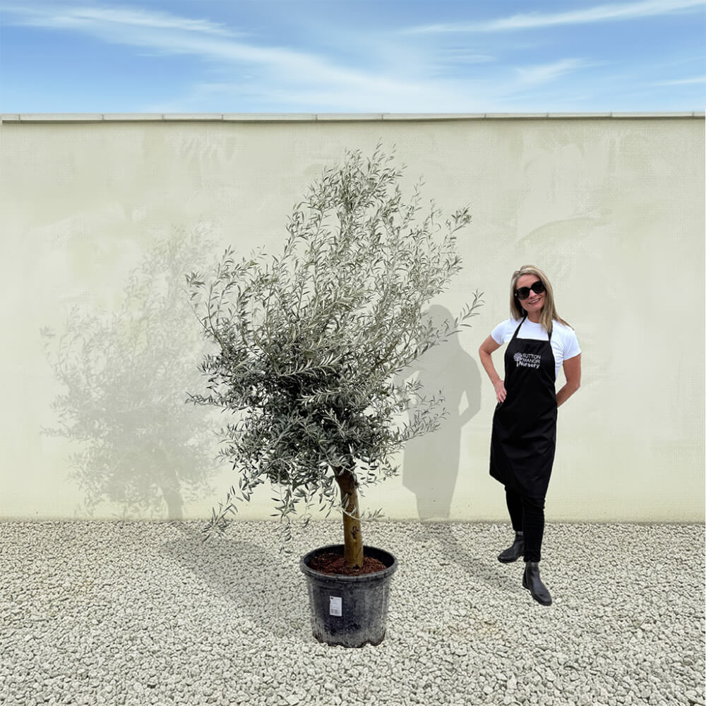 The tree shown in the photo is the exact tree you’ll receive on delivery day. Hand‑selected by the owner of Sutton Manor, this stunning Spanish olive tree was chosen for its exceptionally thick trunk and impressive, full crown. It makes a striking statement whether planted directly into the ground or showcased in one of our elegant pots.