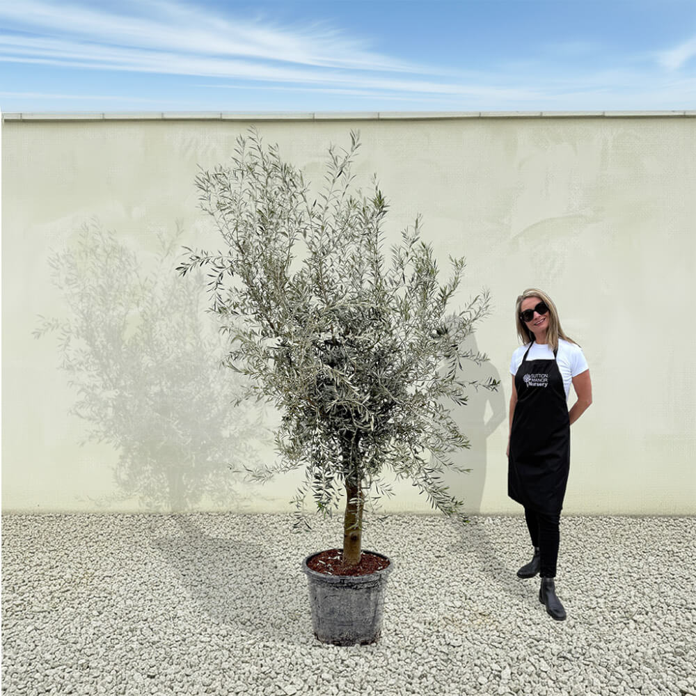 The tree shown in the photo is the exact tree you’ll receive on delivery day. Hand‑selected by the owner of Sutton Manor, this stunning Spanish olive tree was chosen for its exceptionally thick trunk and impressive, full crown. It makes a striking statement whether planted directly into the ground or showcased in one of our elegant pots.
