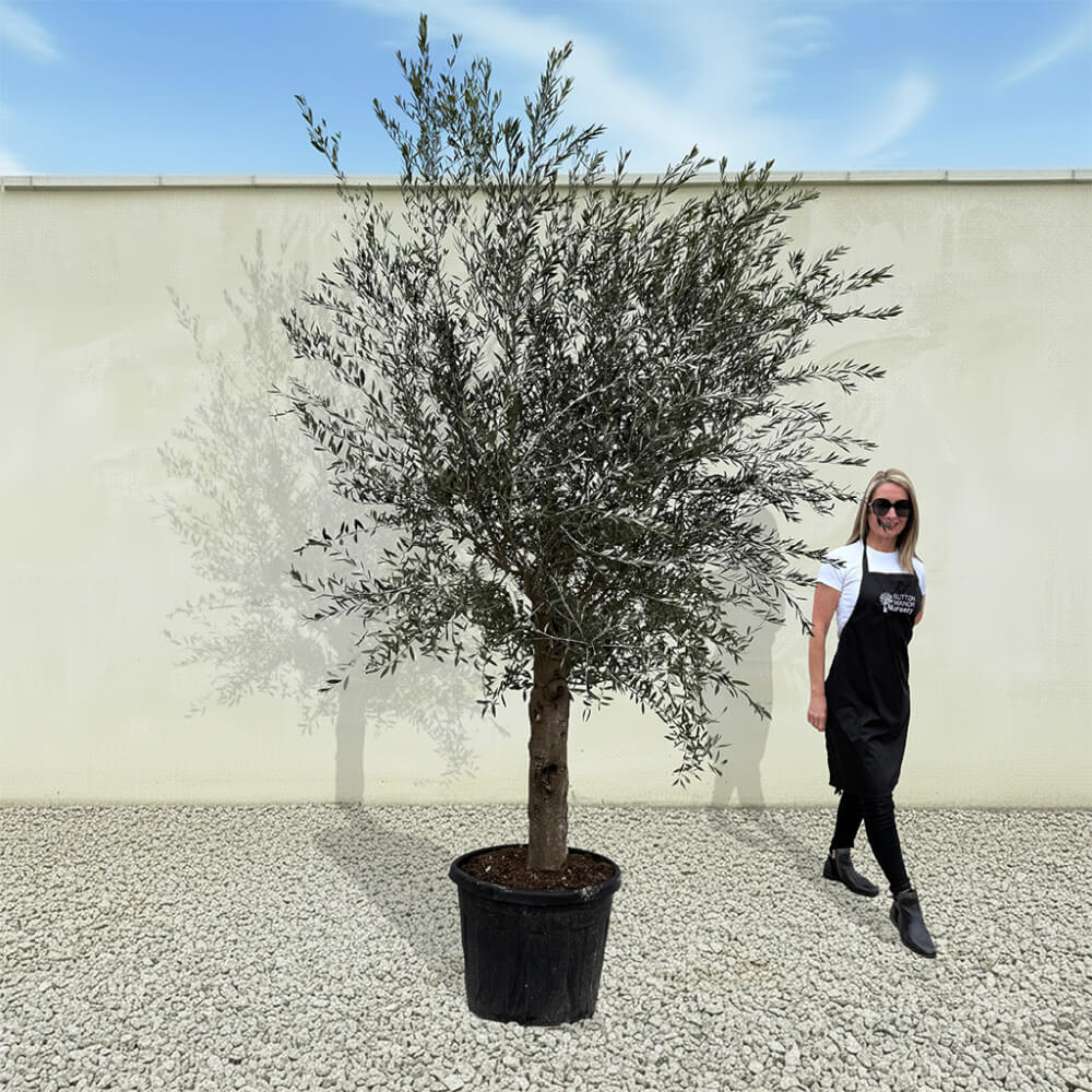 The tree shown in the photo is the exact tree you’ll receive on delivery day. Hand‑selected by the owner of Sutton Manor, this stunning Spanish olive tree was chosen for its exceptionally thick trunk and impressive, full crown. It makes a striking statement whether planted directly into the ground or showcased in one of our elegant pots.