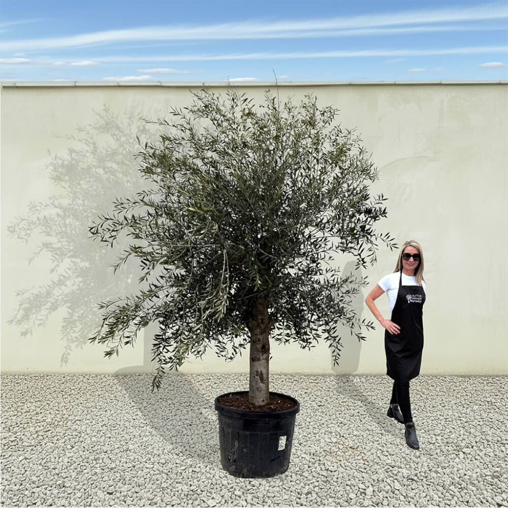 The tree shown in the photo is the exact tree you’ll receive on delivery day. Hand‑selected by the owner of Sutton Manor, this stunning Spanish olive tree was chosen for its exceptionally thick trunk and impressive, full crown. It makes a striking statement whether planted directly into the ground or showcased in one of our elegant pots.