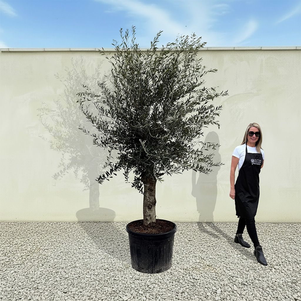 The tree shown in the photo is the exact tree you’ll receive on delivery day. Hand‑selected by the owner of Sutton Manor, this stunning Spanish olive tree was chosen for its exceptionally thick trunk and impressive, full crown. It makes a striking statement whether planted directly into the ground or showcased in one of our elegant pots.