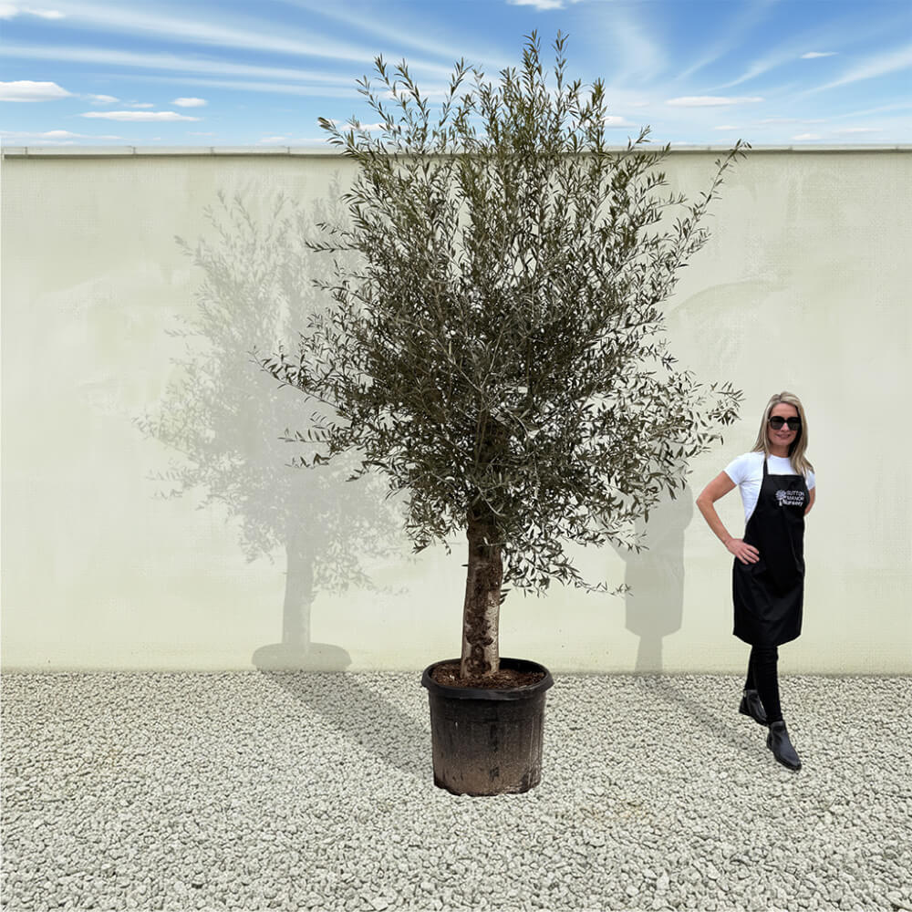 The tree shown in the photo is the exact tree you’ll receive on delivery day. Hand‑selected by the owner of Sutton Manor, this stunning Spanish olive tree was chosen for its exceptionally thick trunk and impressive, full crown. It makes a striking statement whether planted directly into the ground or showcased in one of our elegant pots.