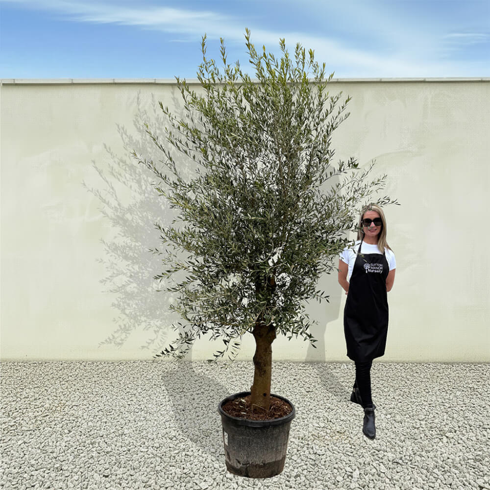The tree shown in the photo is the exact tree you’ll receive on delivery day. Hand‑selected by the owner of Sutton Manor, this stunning Spanish olive tree was chosen for its exceptionally thick trunk and impressive, full crown. It makes a striking statement whether planted directly into the ground or showcased in one of our elegant pots.