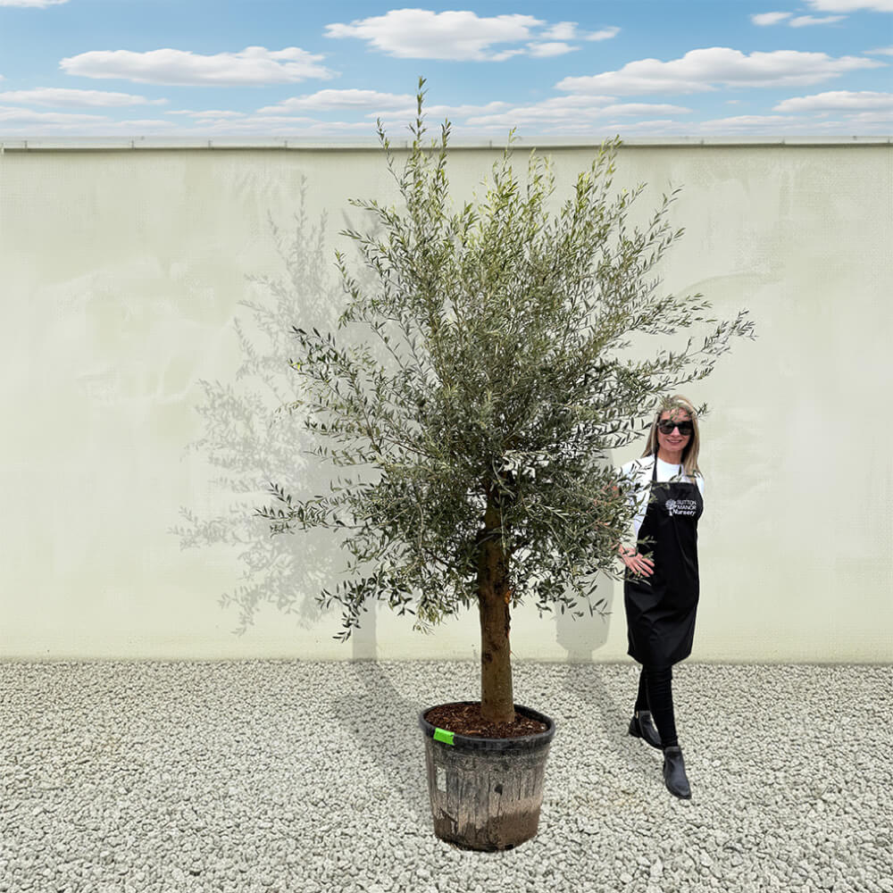 The tree shown in the photo is the exact tree you’ll receive on delivery day. Hand‑selected by the owner of Sutton Manor, this stunning Spanish olive tree was chosen for its exceptionally thick trunk and impressive, full crown. It makes a striking statement whether planted directly into the ground or showcased in one of our elegant pots.