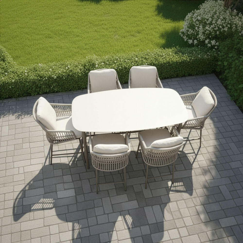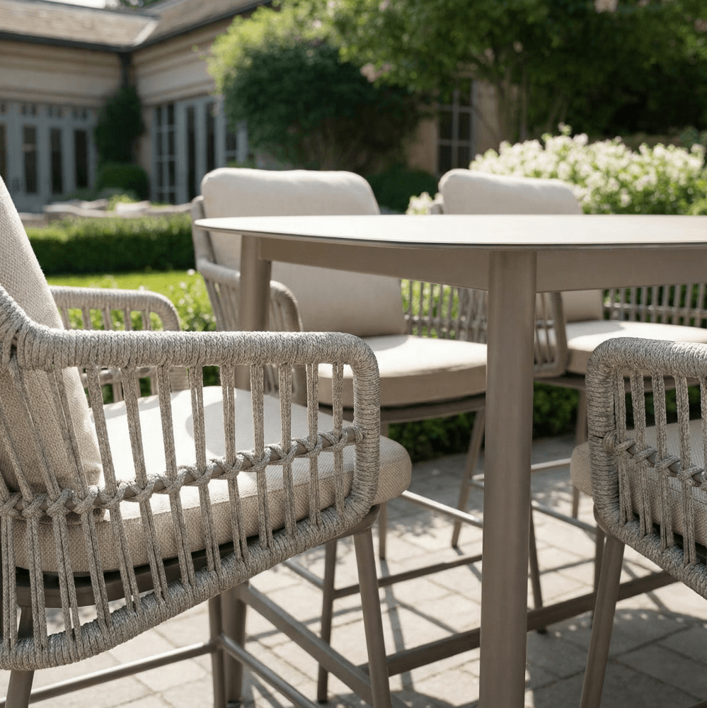 Our hand‑woven rope detailing is crafted by skilled artisans using specialist knotting techniques to form a beautiful, durable furniture framework. The rope is low‑maintenance and can be refreshed once a year with warm, soapy water for effortless care. For added peace of mind, each piece carries a minimum 10‑year warranty when left outdoors year‑round. To protect your garden set during autumn and winter—especially if stored beneath trees—use our protective covers to prevent fallen leaves, mud, and animal droppings from accumulating and lengthening spring clean‑up time.