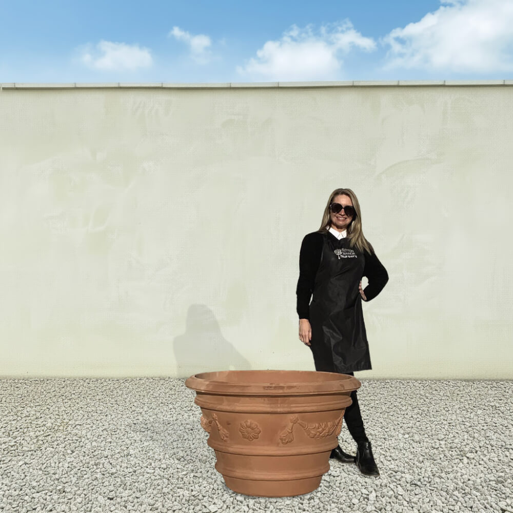 For the first time in the United Kindom, Sutton Manor Nursery has been awarded their stamp of distinction called “Maniero Di Sutton Terracotta”. This stamp is proudly applied to every single one of our handmade Tuscan terracotta pots, which are crafted from one of the oldest families of true bloodline (Tuscan Artisan Potters) that still to this day, produce terracotta traditionally.