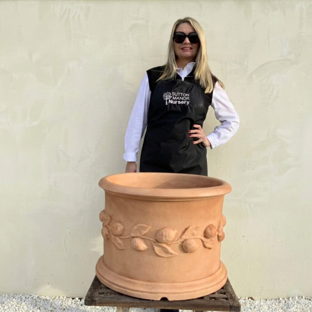 The Tuscany Fruit Pot blends contemporary form with classic Italian artistry. Designed to enrich both indoor and outdoor spaces, its distinctive silhouette and generous proportions make it a standout piece. Decorative fruit motifs wrap the pot in elegant detail, evoking the warmth and abundance of Mediterranean gardens. A timeless accent with a modern edge. Please note these pots are not clay or stone and are fully frostproof, ensuring year round durability.
