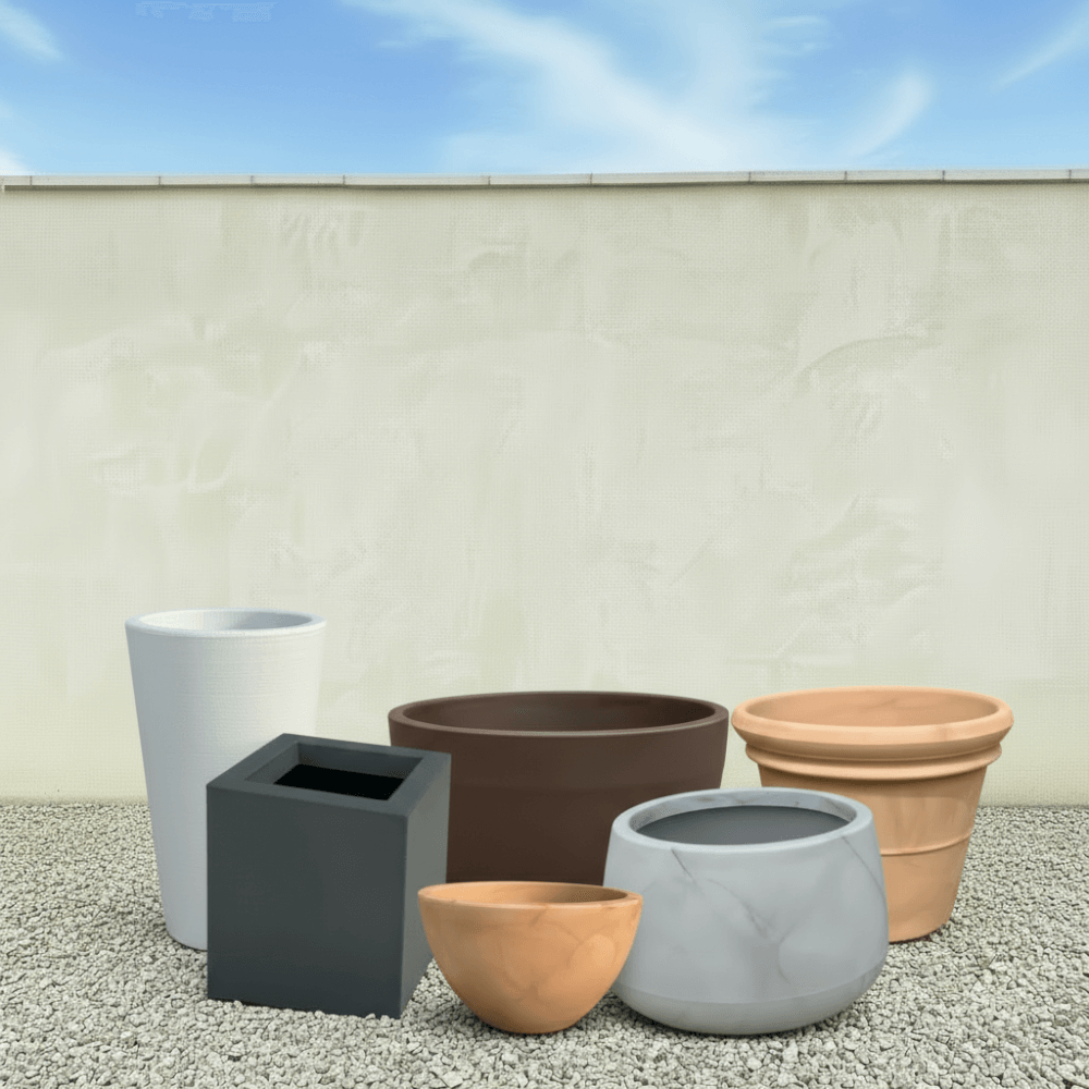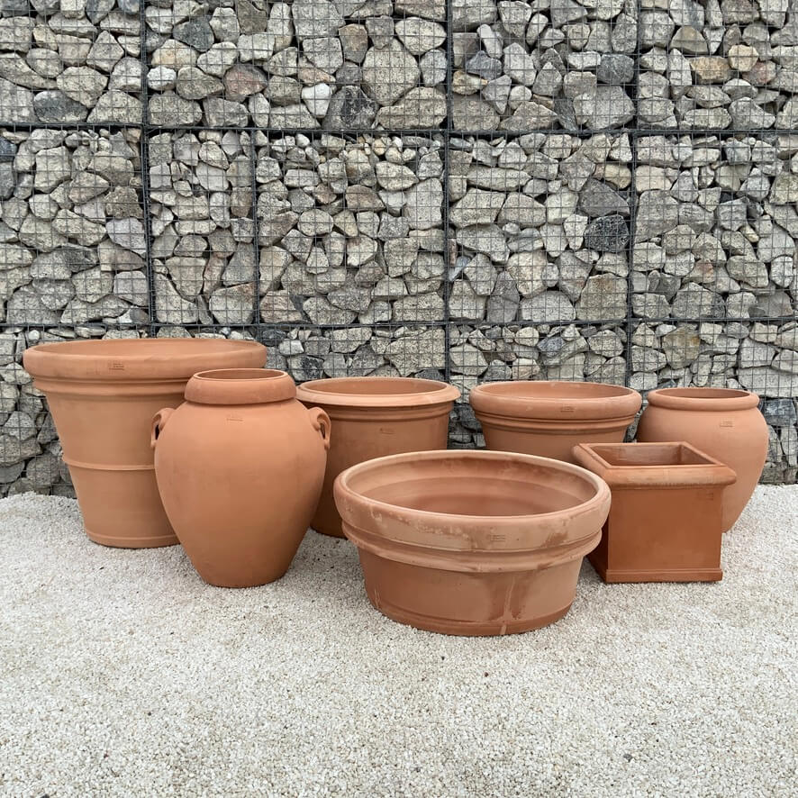 Our collection includes beautifully crafted resin-bonded pots, combining strength and lightweight practicality with a natural stone appearance. We also stock 100% Italian terracotta pots, renowned for their timeless appeal, breathability and classic Mediterranean character, making them ideal for olive trees, acers and feature shrubs. For a more modern aesthetic, our fibre clay designs offer durability with a sleek, refined finish, while our robust iron stone pots provide substantial weight and long-lasting performance in exposed garden settings.