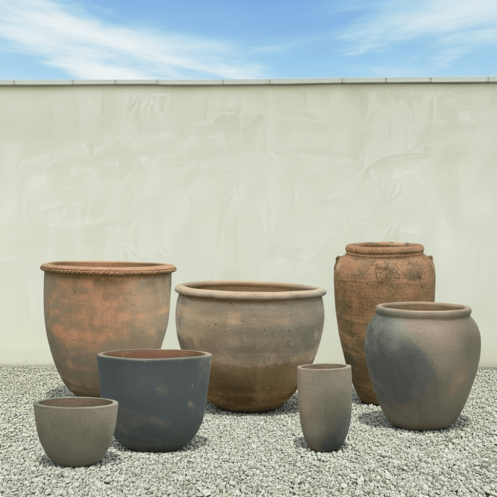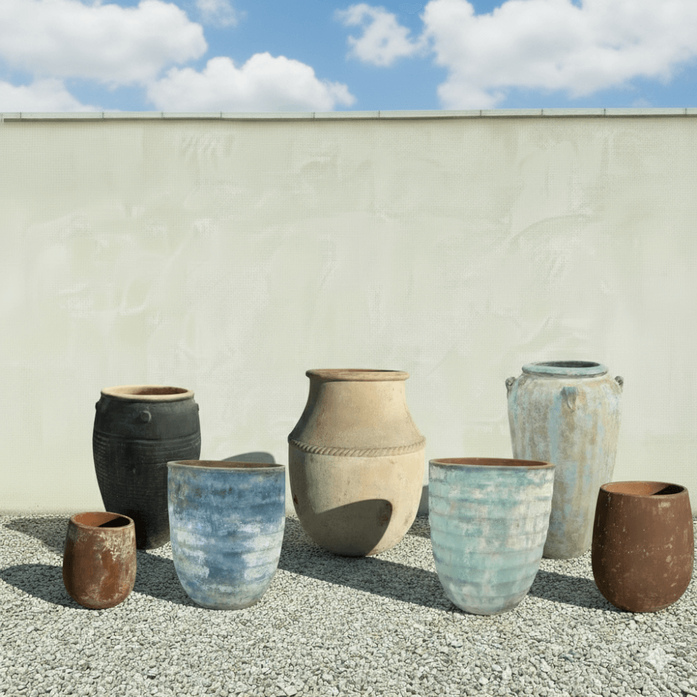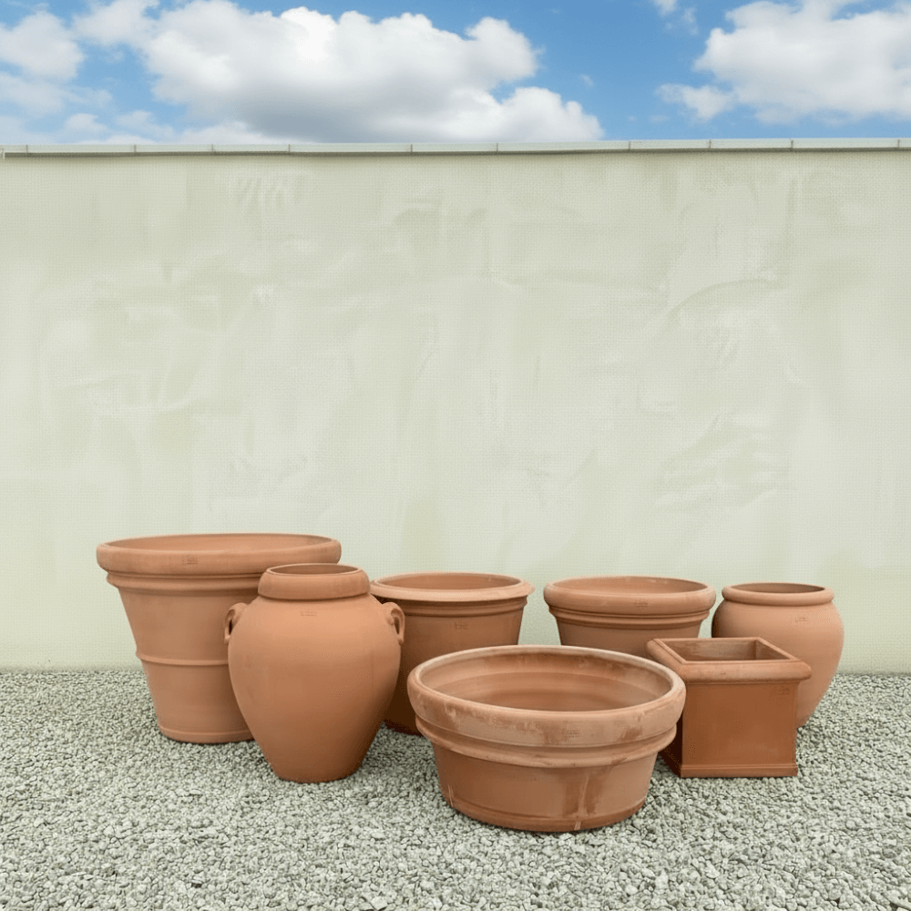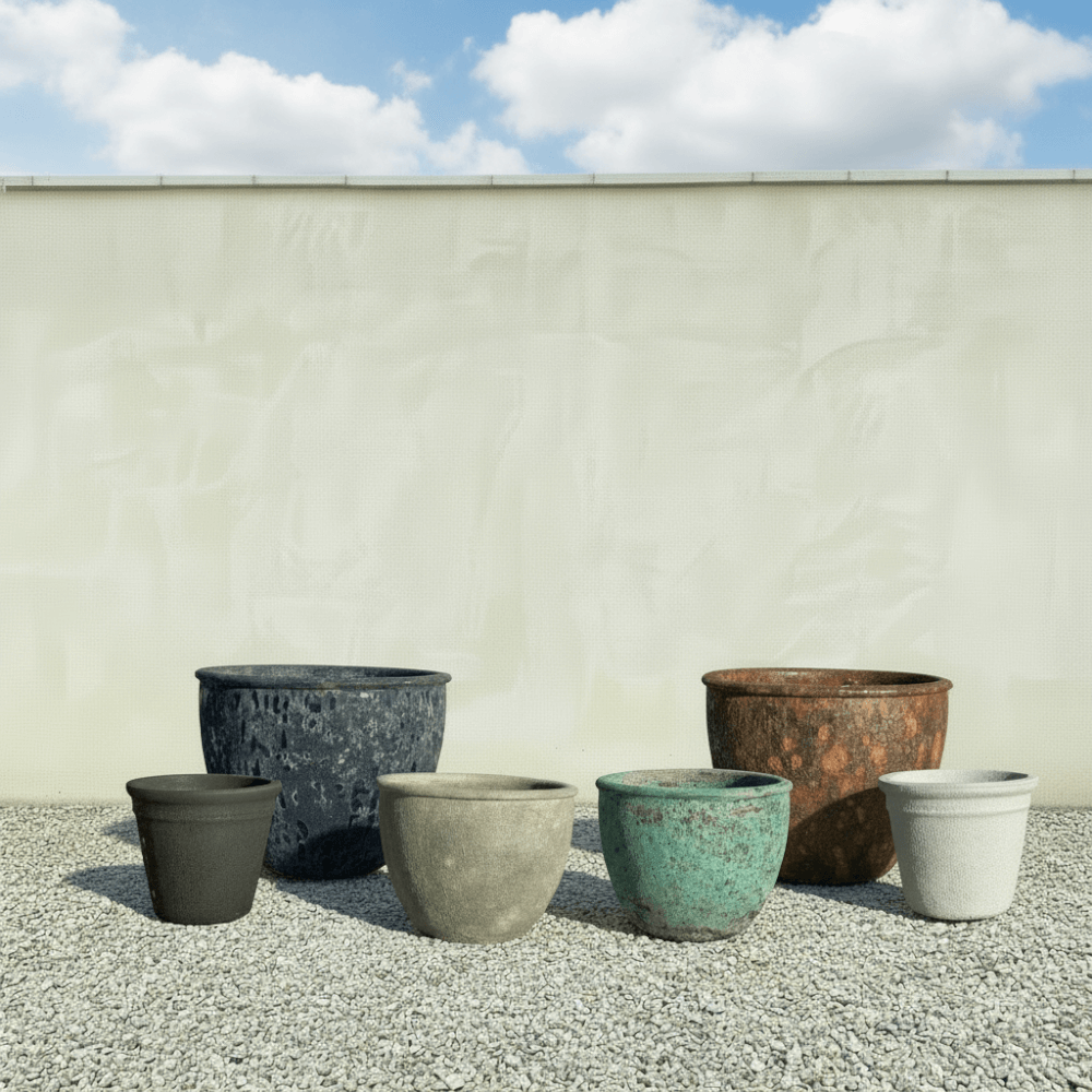 Our collection includes beautifully crafted frostproof resin-bonded pots, combining strength and lightweight practicality with a natural stone appearance. We also stock 100% Italian frostproof terracotta pots, renowned for their timeless appeal, breathability and classic Mediterranean character, making them ideal for olive trees, acers and feature shrubs. For a more modern aesthetic, our frostproof fibre clay designs offer durability with a sleek, refined finish, while our robust frostproof iron stone pots provide substantial weight and long-lasting performance in exposed garden settings.
